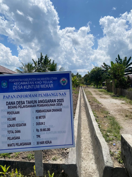 | 2 | Pembangunan Drainase | 65 Meter | 59,983,280 | Desa Kuntum Mekar |